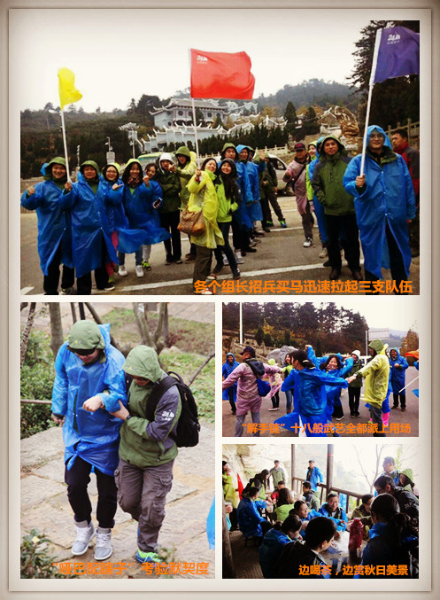 為了增加徒步登山的競技和趣味,此次活動特別設置了拓展競賽的單元。在去程的車上,已有三位記者朋友自告奮勇當上隊長,然后各出奇招——招兵買馬拉起了自己的隊伍,還分別冠上了“將軍隊”、“冠軍隊”和“壯丁隊”的隊名。