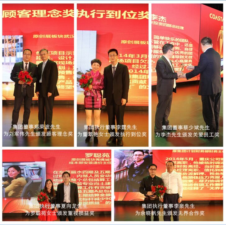 2015年2月27日,沿海集團(tuán)2014年度企業(yè)文化頒獎(jiǎng)典禮成功舉辦,集團(tuán)執(zhí)董會(huì)全體成員和各板塊、各城市公司的骨干,以及獲獎(jiǎng)嘉賓共計(jì)60余人參加了本次頒獎(jiǎng)盛典。
