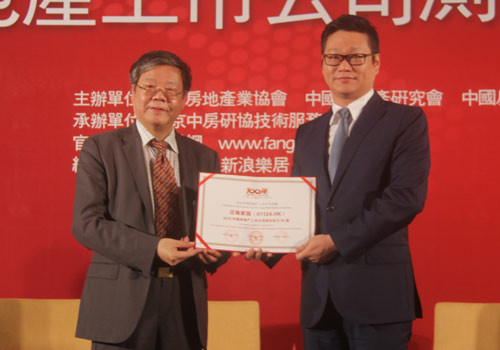 由中國房地產(chǎn)業(yè)協(xié)會(huì)、中國房地產(chǎn)研究會(huì)、中國房地產(chǎn)測(cè)評(píng)中心聯(lián)合推出的《2015中國房地產(chǎn)上市公司測(cè)評(píng)研究報(bào)告》,于5月28日在香港麗思卡爾頓酒店盛大發(fā)布,2015中國房地產(chǎn)上市公司100強(qiáng)排行榜正式出爐。沿海綠色家園集團(tuán)去年的發(fā)展獲得評(píng)委們一致認(rèn)可,連續(xù)第四年榮登該榜單的50強(qiáng),張亞峰副總裁應(yīng)邀出席了發(fā)布會(huì)并上臺(tái)領(lǐng)獎(jiǎng)。