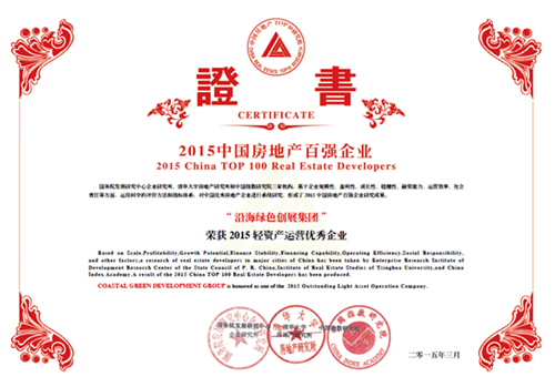 沿海綠色家園集團(tuán)(以下簡稱“沿海集團(tuán)”)連續(xù)十一年獲頒“中國房地產(chǎn)百強(qiáng)企業(yè)稱號”殊榮,同時(shí)被授予“2015年中國房地產(chǎn)百強(qiáng)企業(yè)——百強(qiáng)之星”的稱號,張亞峰副總裁代表沿海集團(tuán)上臺領(lǐng)獎,并與來自全國各地的眾多同行分享了房地產(chǎn)輕資產(chǎn)運(yùn)營的經(jīng)驗(yàn)。