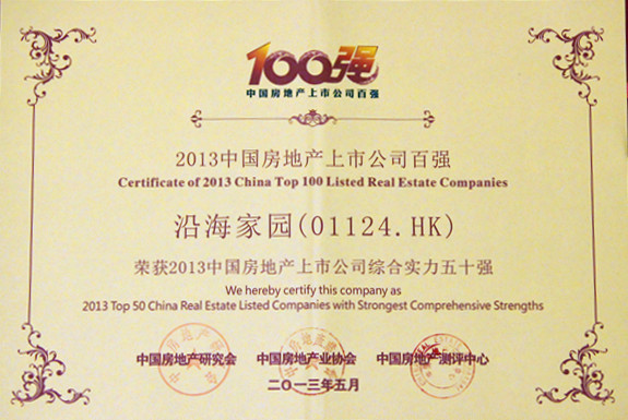 由中國房地產(chǎn)研究會、中國房地產(chǎn)業(yè)協(xié)會與中國房地產(chǎn)測評中心主辦的2013中國房地產(chǎn)上市公司測評成果發(fā)布會于5月23日在北京和香港同步盛大舉行。沿海綠色家園有限公司(香港聯(lián)交所代碼“01124.HK”,簡稱“沿海家園”)連續(xù)兩年入選“中國房地產(chǎn)上市公司綜合實力50強”,2013年名列第37位。